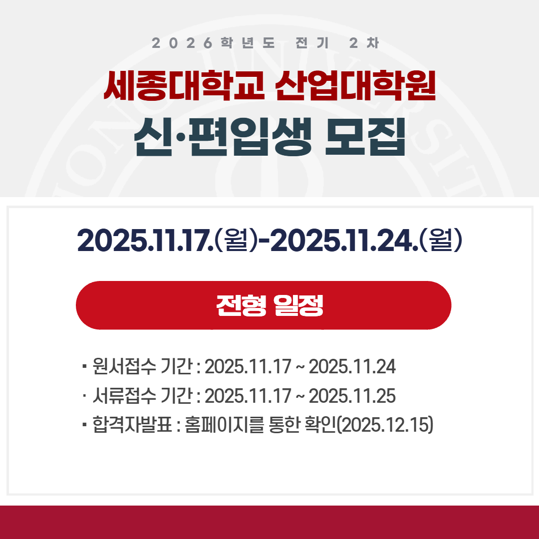 2026학년도 전기(1차) 산업대학원 입시합격자 발표(11월 10일 발표 예정)